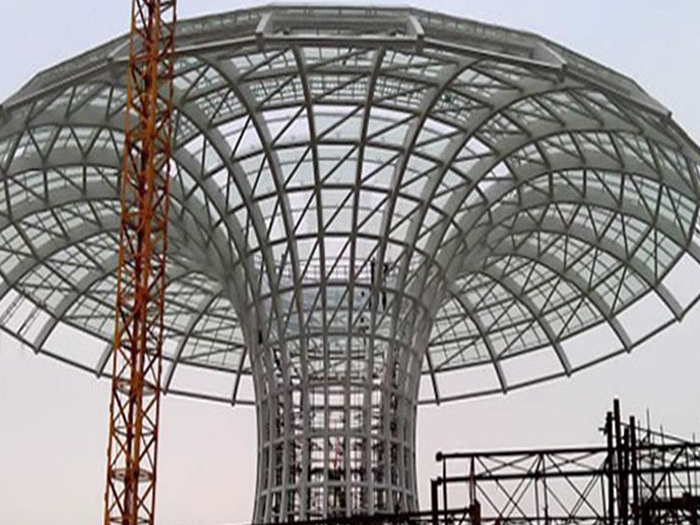 二、球形网架结构因其结构新颖,受力合理,自重轻、用钢量低等优点。如大型体育场馆球形穆棱螺栓球网架、公共场馆球形网架、电厂穆棱螺栓球网架、水泥工业球形网架、仓储物流球形网架、穆棱干煤棚工业球形网架、穆棱收费站穆棱加油站球形网架、展览中心、影剧院、商场、航站楼、候车厅、工厂穆棱车间、仓库、电视塔等球形螺栓球节点网架。国内球形网架结构主要分为:穆棱焊接球节点网架及螺栓球节点网架两种。螺栓球节点网架其构件工厂内加工量较大,现场安装便捷,适用于现场工期紧,穆棱施工条件、用电量受制约,网架形状复杂、穆棱杆件定位困难的异形结构。螺栓球节点球形网架系统基本由穆棱杆件、螺栓球、支撑支座等组成。按照节点形式可分为交叉穆棱桁架体系、四角锥体系、三角锥体系等。支撑方式多为固定支座支撑。对于大面积、大跨度及有特殊受力或伸缩要求的网架结构可采用橡胶支座、滑移支座、球铰支座等支撑形式,以满足结构自身的受力稳定、均衡,便于内力释放等设计要求。